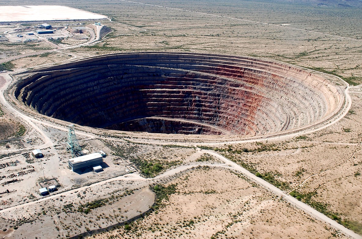 abandoned open pit copper mine, porphyry copper deposit, aerial photograph, casa grande, arizona |
