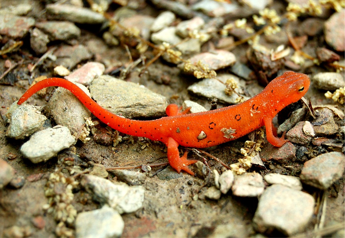 | red-spotted newt, eft, salamander, amphibian, carnivore, george washington national forest, virginia, warning colors, aposematic | marbled salamander, amphibian, carnivore, dutch gap conservation area, virginia | green tree frog, amphibian, carnivore, dutch gap conservation area, camouflage |