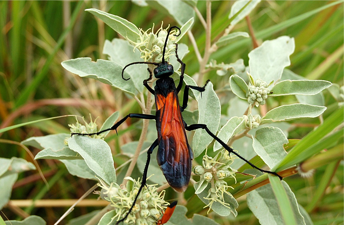 | tarantula hawk, spider wasp, insect, preys on spiders for offspring, hymenoptera, arthropod, invertebrate | giant resin bee, insect, button bush, pollination, hymenoptera, arthropod, invertebrate | phantom crane fly, insect, diptera, arthropod, invertebrate |