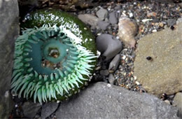 tide pool, sea shore, low tide, intertidal zone, pacific ocean, giant green anemone, mora beach, olympic national park, washington |