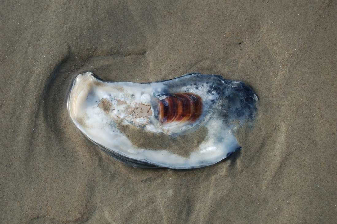| oyster shell, beach, sand, shore, bivalve, mollusk, exoskeleton |
