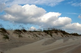 | sand dunes, beach, coast, cumulus and cirrus clouds, sea oats, outer banks, north carolina |
