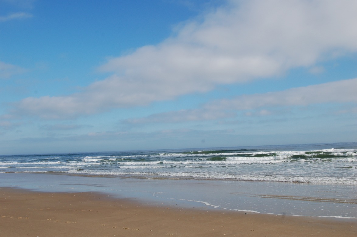 | atlantic ocean, coast, beach, waves, sand, cumulus clouds, outer banks, north carolina |